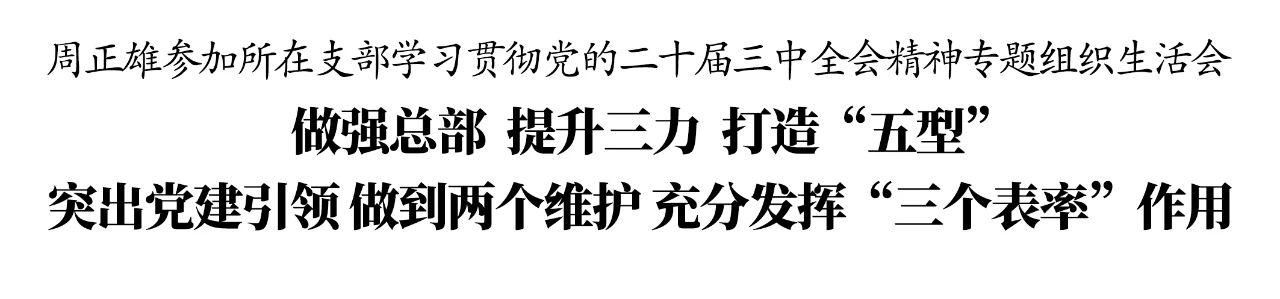 8月14日,集團(tuán)機(jī)關(guān)第一黨支部召開(kāi)學(xué)習(xí)貫徹黨的二十屆三中全會(huì)精神專(zhuān)題組織生活會(huì),集中學(xué)習(xí)習(xí)近平總書(shū)記關(guān)于推動(dòng)機(jī)關(guān)黨建高質(zhì)量發(fā)展作出的重要指示精神。集團(tuán)黨委書(shū)記、董事長(zhǎng)周正雄以普通黨員身份參加會(huì)議。