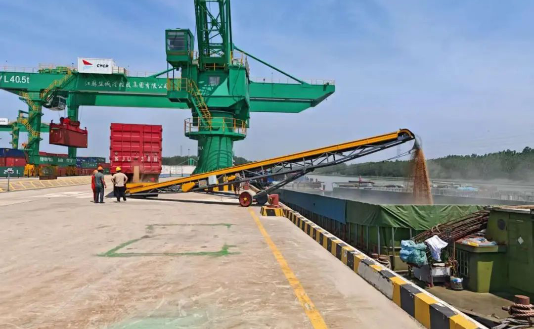 這是陸港集團亭湖港區與江蘇豐溢良之泉農業發展有限公司攜手創新,首次成功應用的“輸送帶直裝”工藝,作業量達5000噸,全年預計20000噸。為區域夏糧運輸開辟了一條高效、穩定的水上通道,有力保障了糧食供應鏈的暢通有序。