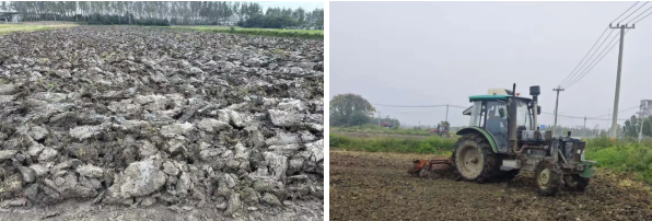 為預(yù)防連續(xù)陰雨天氣給秋播耕整帶來的“爛耕”“爛種”風(fēng)險(xiǎn),水稻收割一結(jié)束,技術(shù)人員便迅速深入田間,逐塊排查墑情。對(duì)于土壤濕度大、易積水的地塊,立即開挖排水溝,加速積水排出,降低土壤含水量,為耕整作業(yè)掃清障礙。在耕整過程中,公司嚴(yán)格執(zhí)行秸稈還田率達(dá)到100%標(biāo)準(zhǔn),將農(nóng)業(yè)廢棄物變廢為寶,既改善土壤結(jié)構(gòu),又增加有機(jī)質(zhì)含量;旋耕整地嚴(yán)格把控質(zhì)量,土壤深翻深度控制在25—30厘米,確保耕作層疏松透氣,有利于小麥根系下扎;農(nóng)機(jī)操作要求“耕翻到頭、到邊,無漏耕、無死角”,確保地塊耕整質(zhì)量均勻一致,為高質(zhì)量播種打造“優(yōu)質(zhì)土壤環(huán)境”。