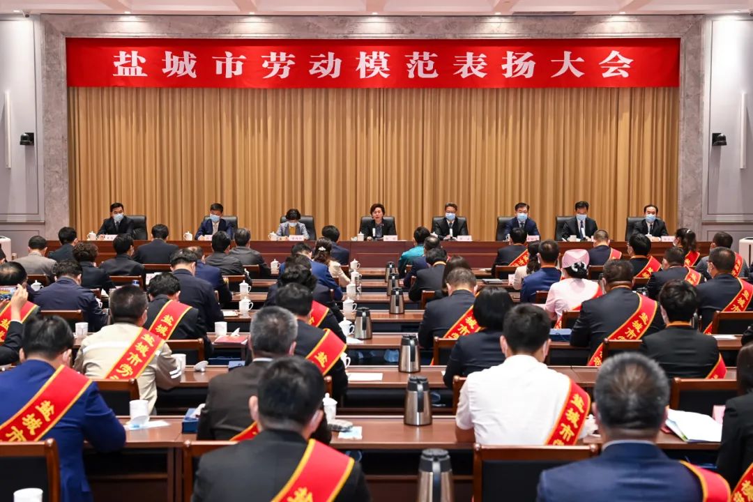 下午3時(shí),大會(huì)開始,全體起立,奏唱國(guó)歌。會(huì)上宣讀《中共鹽城市委鹽城市人民政府關(guān)于表?yè)P(yáng)鹽城市勞動(dòng)模范的決定》,授予300名同志“鹽城市勞動(dòng)模范”稱號(hào)。在喜慶的氣氛中,身披紅色綬帶的市勞動(dòng)模范代表登上主席臺(tái),市領(lǐng)導(dǎo)向他們頒發(fā)榮譽(yù)證書和獎(jiǎng)?wù)?。鹽城郵政公司快遞員陳國(guó)勇代表市勞動(dòng)模范宣讀倡議書,號(hào)召全市廣大勞動(dòng)者勤奮勞動(dòng),扎實(shí)工作,銳意進(jìn)取,勇于創(chuàng)造,以昂揚(yáng)向上的精神狀態(tài)和“比學(xué)趕超”的工作干勁,再創(chuàng)新業(yè)績(jī)、建功新時(shí)代,以實(shí)際行動(dòng)迎接黨的二十大勝利召開。
